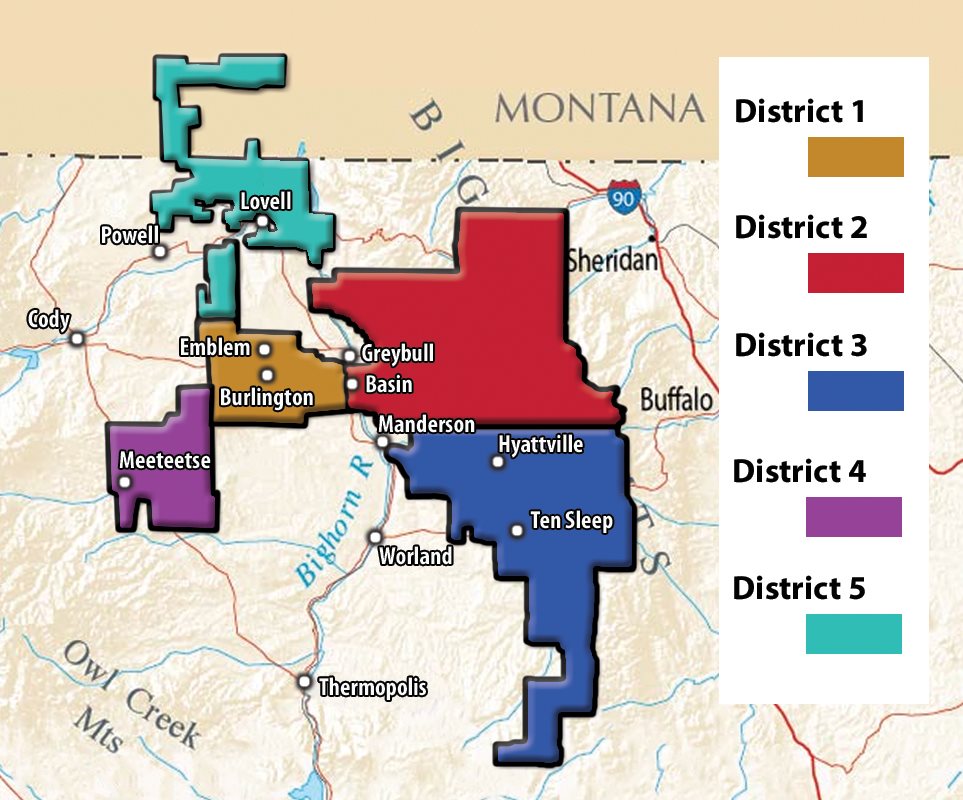 Big Horn Rural Electric Company, established in 1937, currently serves 4,215 meters, over 1,300 miles of line. Big Horn services 3,100 square miles in five counties in Wyoming (Big Horn, Washakie, Park, Sheridan, and Johnson) and two counties in Montana (Big Horn and Carbon).